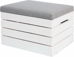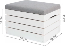 Oplev en alsidig puf-taburet med opbevaring, der sparer plads og holder hjemmet organiseret. Det opklappelige låg med sæde giver hurtig adgang til dine ting, mens den neutrale kombination af hvidt træ og gråt polster passer ind i både moderne og klassiske interiører.