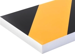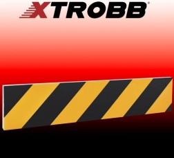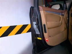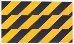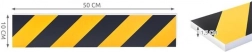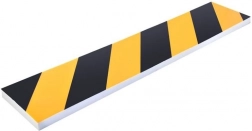 Gul‑sorte diagonale striber fungerer som optisk advarsel og gør det nemmere at vurdere afstanden til væggen.