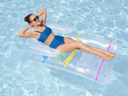 Det oppustelige liggeunderlag fra Bestway er den perfekte følgesvend til afslapning på vandet, hvad enten det er på havet, ved søen eller i poolen. Liggeunderlaget er fremstillet af holdbart PVC, hvilket sikrer lang levetid og modstandsdygtighed over for saltvand.