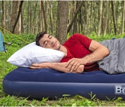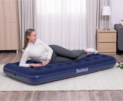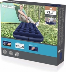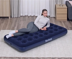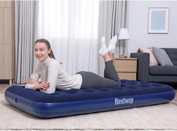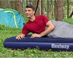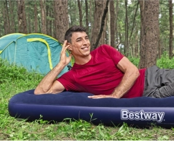 Nyd en behagelig søvn hvor som helst. Den oppustelige enkeltseng fra BESTWAY kombinerer holdbart PVC og behagelig velour for komfortabel liggekomfort uden glidende sengetøj. Den indvendige coil-beam-konstruktion fordeler vægten jævnt og giver stabilitet hele natten.