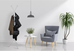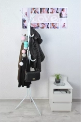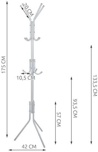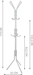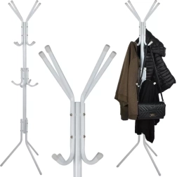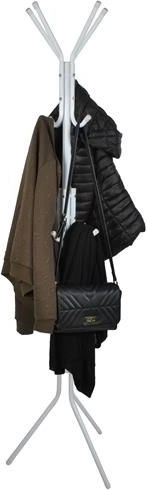 Det fritstående tøjstativ er designet til at holde orden i dit rum. Det er udstyret med 12 kroge med plastbeskyttelseshætter, som skåner dit tøj. Ideelt til ophængning af frakker, hatte og paraplyer på 3 niveauer af kroge.