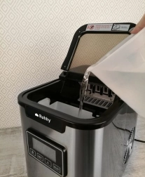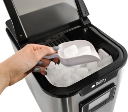 Ruhhy Ismaskine er den perfekte løsning til at forberede iskolde drikke derhjemme og på kontoret. Med høj kapacitet på op til 12 kg is dagligt og muligheden for at producere tre forskellige størrelser isterninger (S/M/L), kan du altid få isterninger efter dine behov. Bare fyld vandtanken, vælg kubens størrelse, og nyd iskold forfriskning efter få minutter.