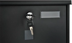 Pålidelig postkasse til både hus og sommerhus. Det overdækkede indkast beskytter posten mod regn og fugt og rummer uden problemer forsendelser i formatet A4. Den låsbare frontdør og de to medfølgende nøgler tager sig af privatliv og sikkerhed.