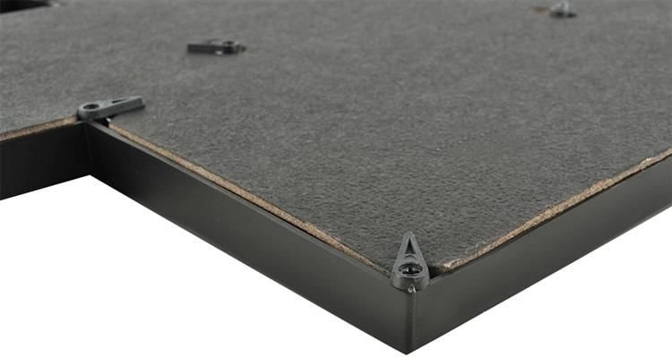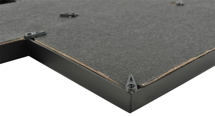 Rammen er lavet af let plast og bruger beskyttende folie i stedet for glas, så den er sikker i hjem med børn og kæledyr. Bagpanelet løsnes nemt med drejelåse, og udskiftning af fotos klares på et øjeblik. Den kan hænges på væggen eller stilles op ad en væg.