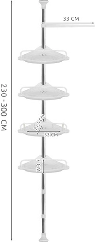 Teleskopstangen med intervallet 230–292 cm tilpasser sig de fleste brusenicher og badekar. Den glatte, holdbare plast er let at vedligeholde, og de gummibelagte, skridsikre endestykker giver hele konstruktionen stabilitet og beskytter både gulv og loft mod skrammer.