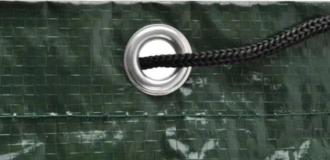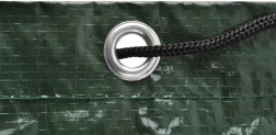 Takket være snore og øjer kan overtrækket fastgøres sikkert, så det ikke blæser væk. Tilbyder enkel og effektiv fastgørelse.