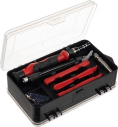 Dette professionelle og hobbyvenlige præcisionsværktøjssæt er designet til hurtig og sikker adskillelse og samling af enheder med små og ikke-standard skruer. Hver del har sin plads i det kompakte, dobbeltsidigt åbne etui, hvilket sikrer orden, overblik og nem bærbarhed. Takket være magnetisatoren kan du nemt trække skruer ud fra svært tilgængelige steder.