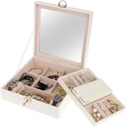 Smykkeskrinet Beautylushh er udstyret med en udtagelig rejsekassette, som du kan tage med dig, uanset hvor du går. Denne lette og kompakte kassette indeholder flere mindre og større rum til forskellige typer smykker.