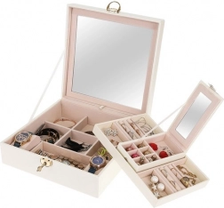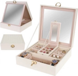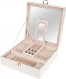 Spejlet inde i smykkeskrinet gør det nemt at tage smykker på eller lægge makeup. Under spejlet er der opbevaringsplads til opbevaring af dine mest værdifulde stykker.