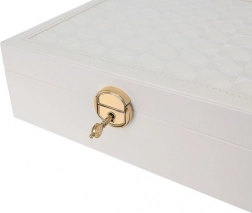 Smykkeskrinet er udstyret med en lås med nøgle, som beskytter dine værdigenstande mod tab eller tyveri.