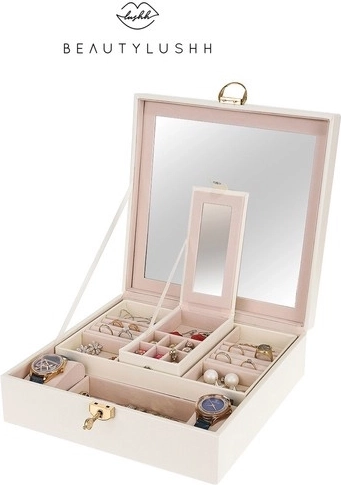 Smykkeskrinet Beautylushh har flere opbevaringsrum, inklusive udtagelige kassetter, der lader dig organisere alle dine kostbarheder.
