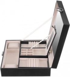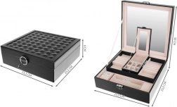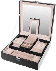 Dette smykkeskrin er perfekt for enhver smykke- og modeelsker. Det tilbyder flere lag af opbevaringsrum, inklusive en aftagelig rejsekasse, hvilket giver det alsidighed og praktik, som du vil værdsætte under rejser. Det indbyggede spejl i låget gør det lettere at bære smykker og justere dem.