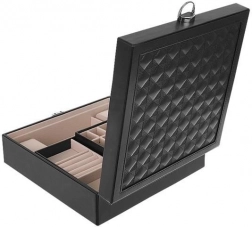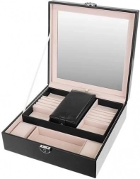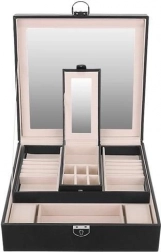 Smykkeskrinet indeholder flere niveauer af rum, der muliggør organisering af forskellige typer smykker.
