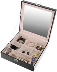 Spejlet placeret indeni smykkeskrinet sikrer praktisk brug ved klædning eller justering af smykker.