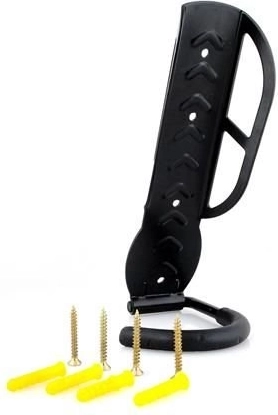 Denne alsidige cykelkrog er designet til forskellige cykeltyper by-, mountain-, racer- og alle hjulstørrelser. Den monteres på væggen med fire monteringsskruer og tilbyder stabil og sikker cykelopbevaring.