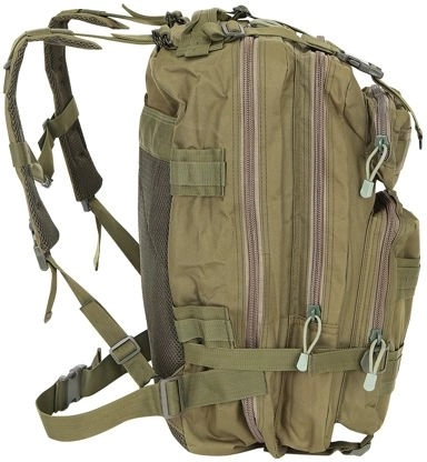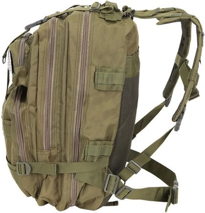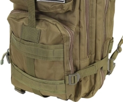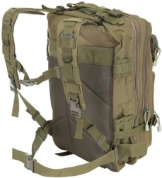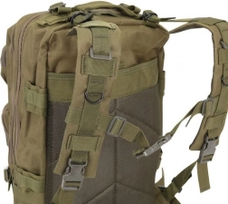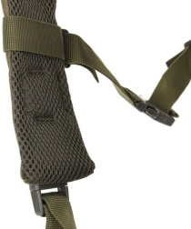 Rygsækken er udstyret med PALS-stropper til MOLLE-systemet til montering af ekstra udstyr. Fuld justering gør det muligt at tilpasse omkredsen af rygsækken med justerbare stropper, velegnet til at bære for eksempel liggeunderlag eller telt.