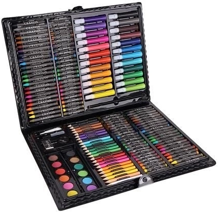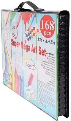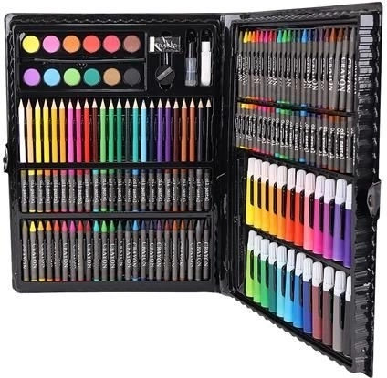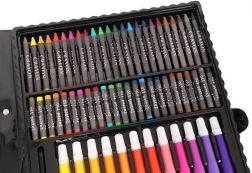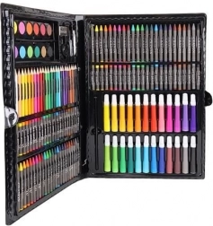 Super Mega Sæt med Kunstnerartikler 168 stk. tilbyder alt, hvad du behøver for at skabe kunstværker: 24 farveblyanter, 24 farvetuscher, 48 oliepasteller, 48 voksfarver, 12 akvarelfarver og meget mere. Alle materialer er elegant organiseret i et praktisk etui, hvilket sikrer nem adgang og overblik.