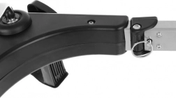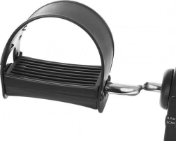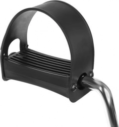 Hurtig foldning i 2 trin sparer plads. Skridsikre endekapper og pedaler med justerbare stropper står fast selv på glatte gulve eller bordplader.