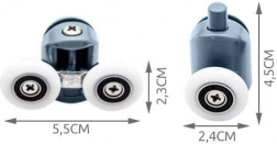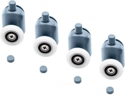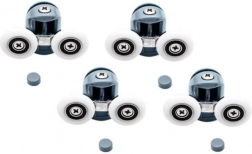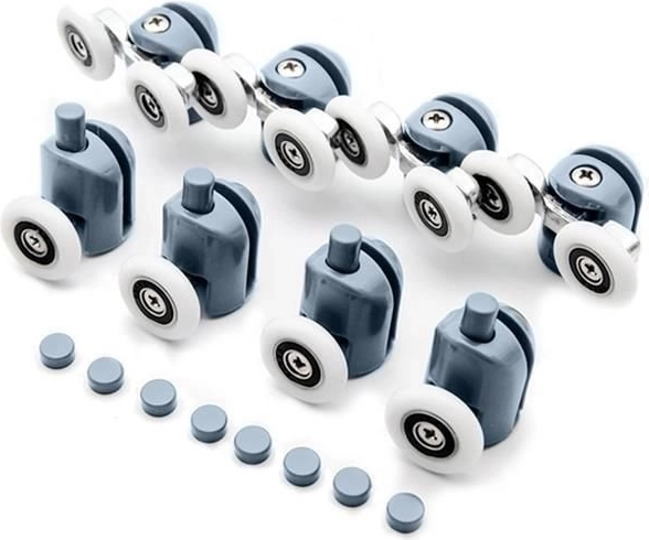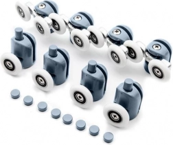 Udskift slidte eller hakkende løbere og genskab jævn og sikker åbning af brusedørene. Sættet indeholder øverste dobbelt og nederste enkelt, vippe- og afkoblingsbare hjul for let vedligeholdelse og rengøring. Den universelle konstruktion med kuglelejer tilpasser sig føringslistens form og forhindrer, at dørene hopper ud af sporet.