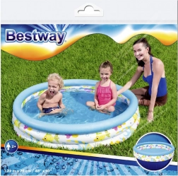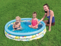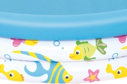 Den oppustelige børnepool fra BESTWAY med målene 122 × 25 cm er et glimrende valg til de første vandlege. De gennemsigtige vægge med et muntert havdyrmotiv stimulerer fantasien og inviterer børn til sikker leg udendørs. Takket være blødt, men robust PVC er poolen modstandsdygtig over for rivning og klar til flere sæsoner.