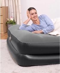 Nyd en rolig søvn takket være den forhøjede højde på 46 cm, som gør det nemt at komme op, samt den solide indvendige Tritech™-konstruktion. Den indbyggede elektriske pumpe 220–240 V puster madrassen hurtigt op og tømmer den igen, og en sikkerhedsventil accelererer udluftningen. Velouroverfladen er behagelig at røre ved og modstandsdygtig over for slitage.