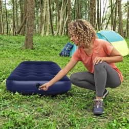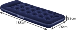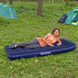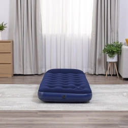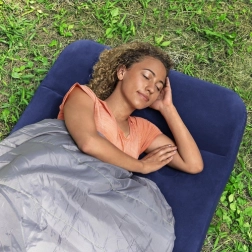Nyd en komfortabel hvile hjemme, i sommerhuset eller i teltet. Den oppustelige madras BESTWAY Air Mattress Jr. Twin kombinerer en stabil indre coil-beam-konstruktion med en behagelig vinyloverflade, der er blød at røre ved og let at rengøre. Takket være den integrerede pude får du komfortabel støtte til hovedet uden behov for en ekstra hovedpude.