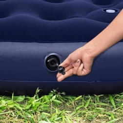Den praktiske indbyggede fodpumpe gør det muligt at pumpe hurtigt op uden elektricitet, og den tovejs låsbare ventil gør både påfyldning og hurtig tømning nem. De kompakte mål og det holdbare materiale gør den til et pålideligt valg til gæster og på farten.