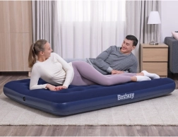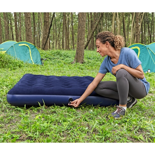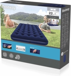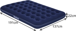 Komfortabel dobbel luftmadras BESTWAY i målene 191 × 137 × 22 cm tilbyder en blød fløjlsoverflade, stiv coil‑beam-konstruktion og en sikkerhedsventil for nem oppumpning og tømning. Ideel til camping og gæster, med maksimal bæreevne op til 300 kg og reparationslap i pakken.