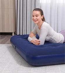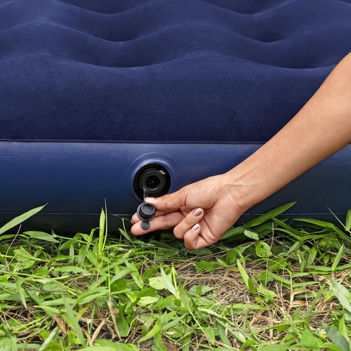 Takket være sikkerhedsventilen er håndteringen hurtig og enkel – du kan pumpe den op og tømme den på ingen tid. Den lave profil på 22 cm gør det nemt at komme ind og ud af sengen og at opbevare den, mens det robuste PVC øger levetiden. Der medfølger en vandafvisende reparationslap, som er praktisk til hurtige reparationer på farten.