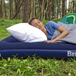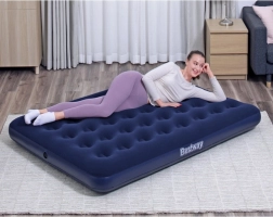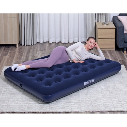 Denne dobbelte luftmadras fra BESTWAY kombinerer holdbarhed og komfort. Den flokkede ruskindsagtige overflade er behagelig at røre ved, forhindrer at sengetøjet glider og øger søvnkomforten. Den stabile coil‑beam-konstruktion fordeler vægten jævnt og giver pålidelig støtte til kroppen både hjemme og i naturen.