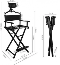 Denne stol er let at transportere og folde sammen. Sammenklapning er nem og hurtig, hvilket muliggør nem bevægelse mellem forskellige steder. Dette gør den ideel for mobile makeupartister.