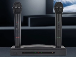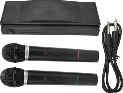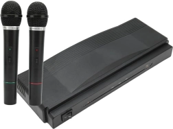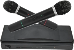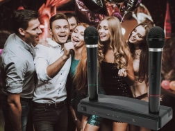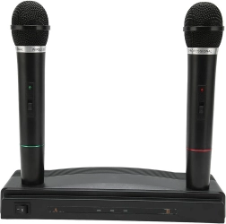 Nem tilslutning og intuitiv betjening lader dig komme i gang på få øjeblikke. Mikrofonerne drives af 9V-batterier, stationen fra det almindelige 230V elnet – en ideel løsning til hurtige karaokeoptrædener og længerevarende underholdning.