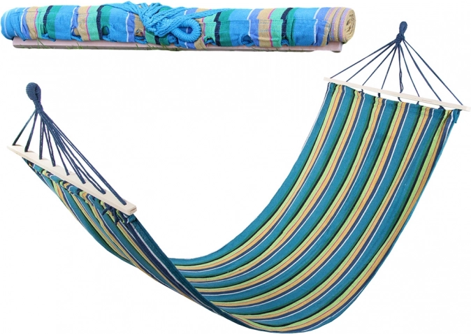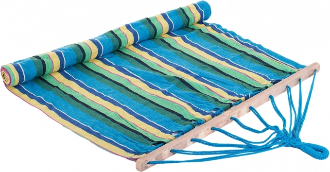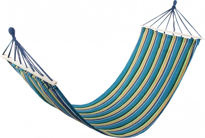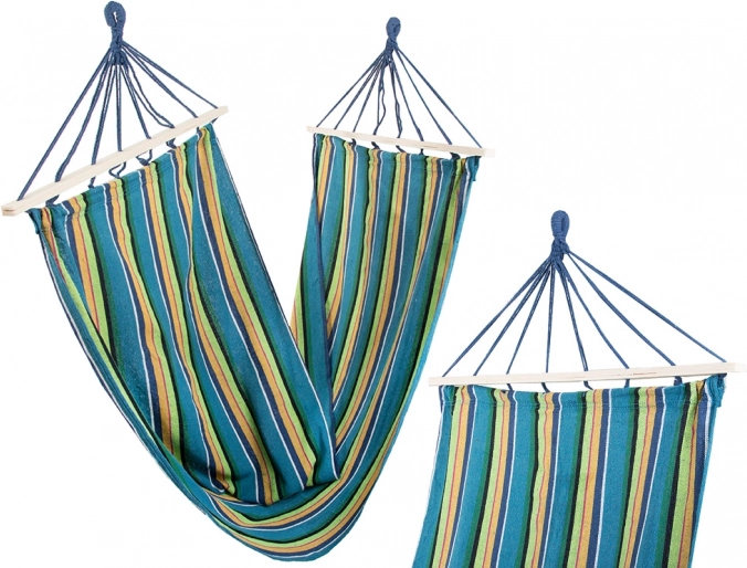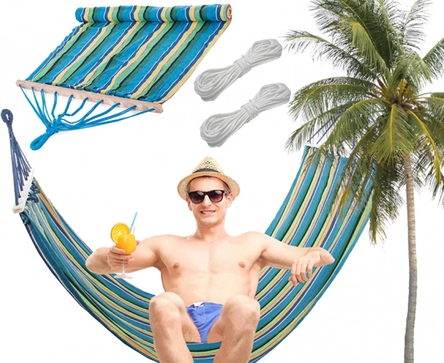 Nyd perfekt afslapning ude og inde – denne stribede hængekøje med træspredere tilbyder høj styrke, en behagelig liggeflade på 200 × 80 cm og nem montering. Den slidstærke blanding af bomuld og polyester er behagelig at røre ved og åndbar, bæreevne op til 150 kg. Inkluderer fastgørelsessnore til hurtig ophængning mellem træer, på stativ eller beslag.