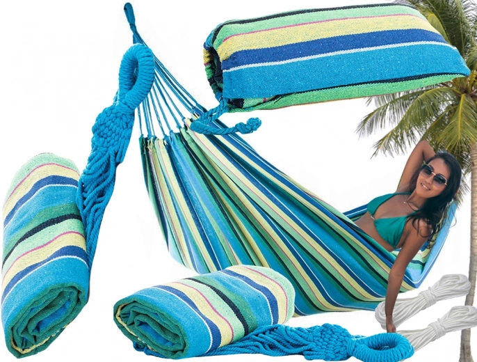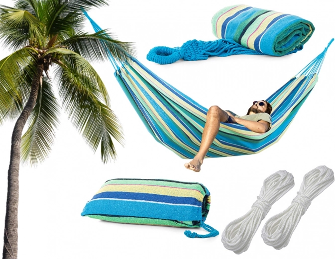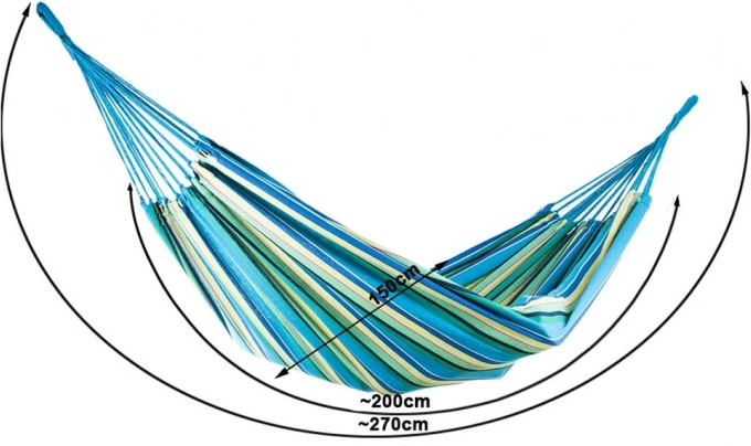 Ideel til have, terrasse, altan og camping. Hængekøjen hænges hurtigt op mellem træer eller på et stativ og giver dig behagelig afslapning på varme dage. Materialet er åndbart, slidstærkt og behageligt at røre ved, hvilket gør det perfekt til daglig hvile.
