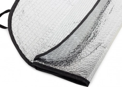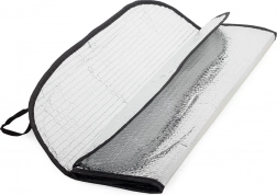 Den reflekterende forrudeskærm med bobleisolering reducerer markant opvarmningen af interiøret og forhindrer, at polstring falmer, samt at elektronik tager skade af solen. Takket være den dobbeltsidigt reflekterende overflade fungerer den pålideligt om sommeren mod varme og hjælper om vinteren med at forhindre isdannelse på ruden.