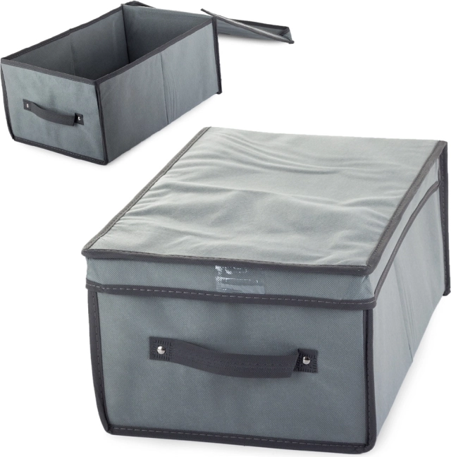 Den universelle boks med klap er en ideel løsning til opbevaring af forskellige ting i hjemmet. Den er perfekt til at organisere og opbevare tøj, sko, bøger, legetøj og dokumenter. Organizeren kan nemt placeres under sengen eller i bunden af skabet, hvilket effektivt sparer plads.