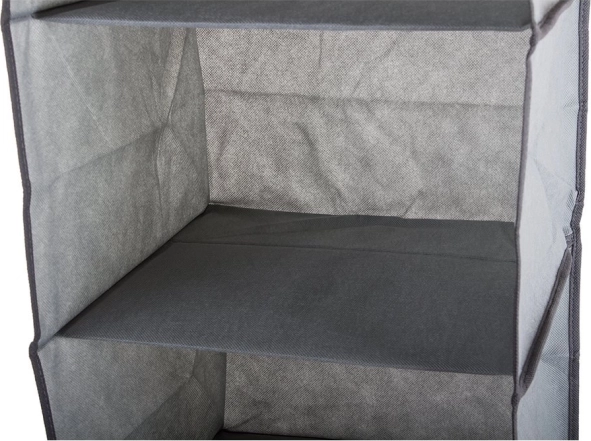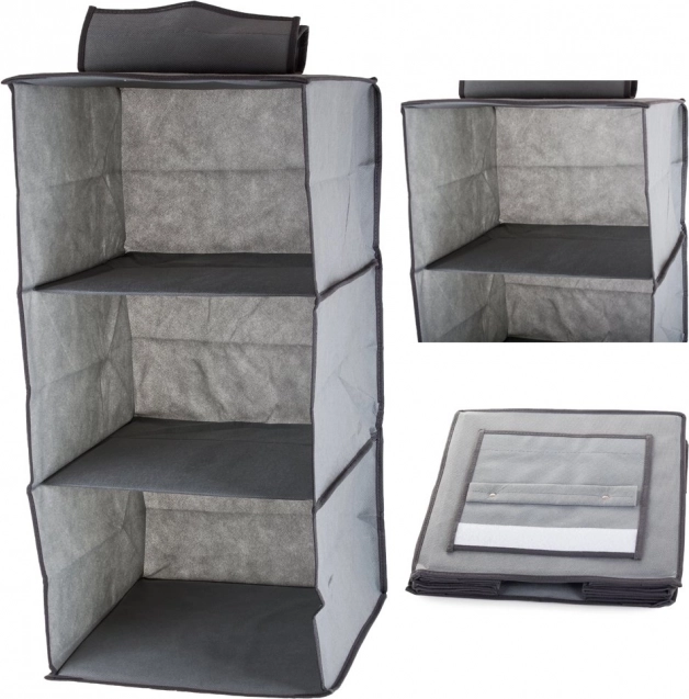 Hold dit klædeskab organiseret og rent med vores hængende organisator. Denne organisator tilbyder tre rummelige hylder, som muliggør overskuelig og adskilt opbevaring af forskellige stykker tøj, linned eller tilbehør.