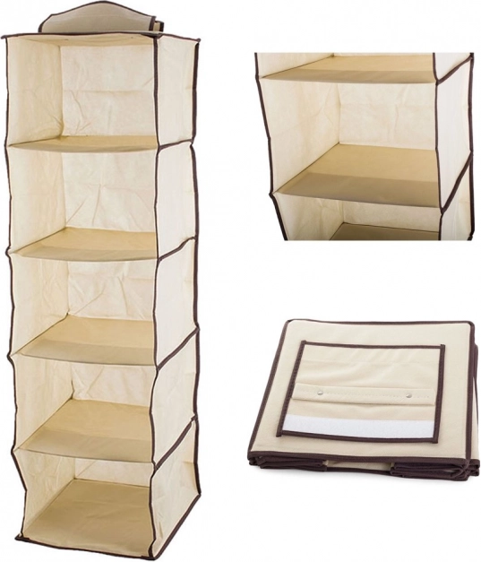 Maksimer din opbevaringsplads med vores hængeorganisator til skab med fem hylder. Denne organisator er designet til at udnytte den vertikale plads effektivt og giver rigelig plads til at organisere tøj, sko eller tilbehør. Den er lavet af holdbart og åndbart materiale, der sikrer lang holdbarhed og beskytter dine ting.