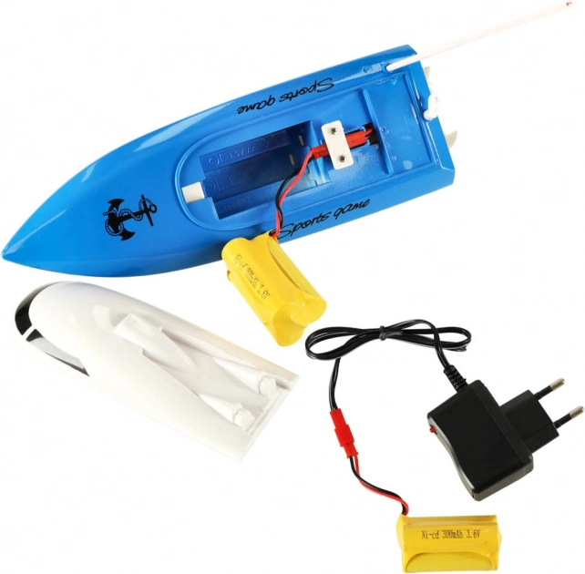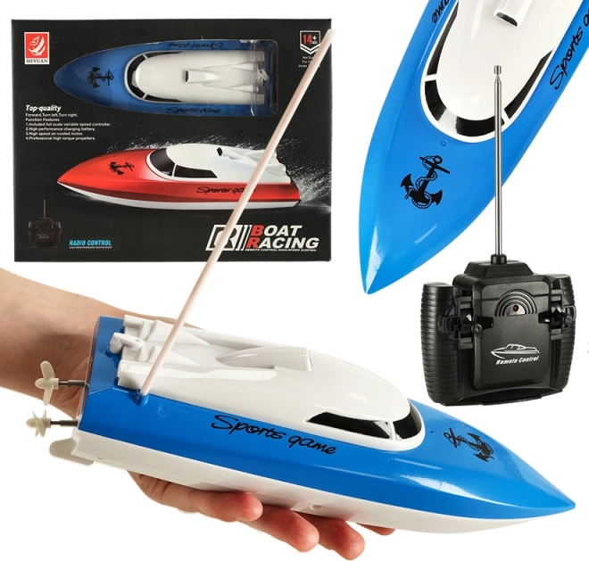 Den ergonomiske fjernbetjening ligger godt i hånden og giver jævn styring af båden – ideel til børn og begyndere.