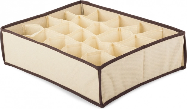 Praktisk beige organisator til overskuelig opbevaring af dit undertøj og strømper i skabet eller i skufferne. Den har 16 rum, som hjælper dig med at holde orden i hver skuffe.