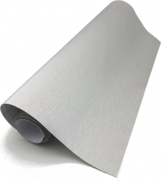 Forvandl udseendet på din bil, dine møbler eller enhver anden overflade med vores selvklæbende dekorative folie. Denne grå folie med børstet struktur giver et moderne og elegant look, der tilfører dine genstande en ny dimension. Den er termoplastisk og tilpasser sig let forskellige former og overflader, hvilket muliggør kreativ og enkel montering.
