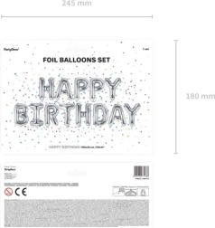 Dekorative foliebaloner med teksten HAPPY BIRTHDAY skaber øjeblikkelig feststemning. Den blanke sølvfarve reflekterer lyset smukt og passer til de fleste farvekombinationer og temaer til fødselsdagsudsmykning.