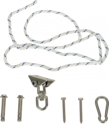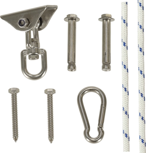Hæng nemt og sikkert din hængekøje, hængestol eller børnegynge op. Det drejelige led med 360° rotation forhindrer, at reb snor sig, og giver en glidende bevægelse. Takket være rustfrit stål 304 er beslaget egnet til både indendørs og udendørs brug – det tåler fugt og korrosion.