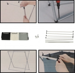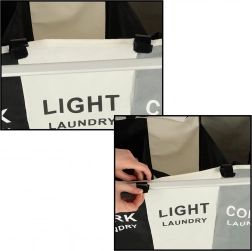 Den stabile metalstativ og det slidstærke Oxford 600D-stof giver lang holdbarhed. Kurven kan hurtigt klappes sammen og bæres ved hjælp af integrerede håndtag, og samling af delene er let takket være stærke velcro-lukninger.
