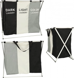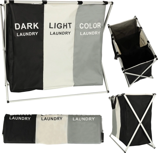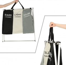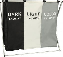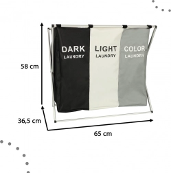 Ikke mere tidskrævende sortering før vask. Denne rummelige organizer tilbyder 3 separate poser med tydelig mærkning for nem orientering. Den samlede volumen på 135 liter (3 × 45 l) rummer hele familiens vasketøj, mens de kompakte mål 65 × 36,5 × 58 cm også passer i mindre rum.