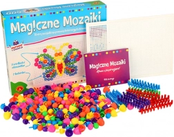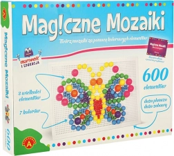 Træd ind i skabelsens verden med Magiske mosaikker, hvor fantasien bliver til virkelighed. På den medfølgende plade med mange huller kan du placere farvede dele i forskellige størrelser og dermed skabe smukke mønstre og billeder. Når du er færdig med én illustration, tager du blot delene ud og begynder at skabe noget nyt.