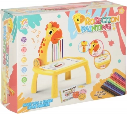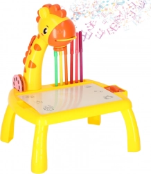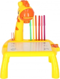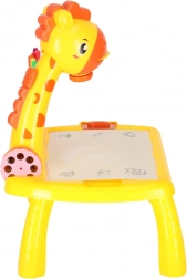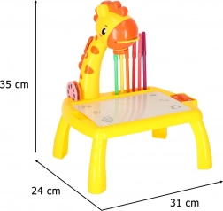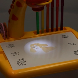 Denne søde bordprojektor formet som en giraf gør al kreativ leg endnu sjovere. Når en af de tre skiver med billeder sættes i og projektoren tændes, projiceres motivet på fladen, så børn nemt kan tegne efter. Takket være den aftørrbare tavle kan de øve igen og igen – uden at spilde papir.