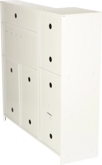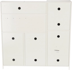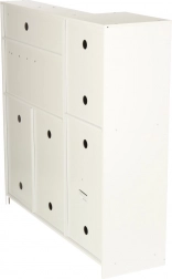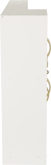 Den hvide trækonstruktion med metaltilbehør såsom gryde, pande og køkkenredskaber giver alsidig brug og er et stilfuldt supplement til børneværelset.