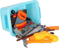 Børn træner gennem leg finmotorik og koordination: skrue, save, hamre eller skære med sav. Alt er tilpasset børnehænder og lavet af kvalitetsplast, let og holdbart for maksimal sikkerhed.