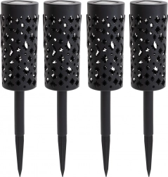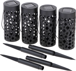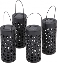 Disse solcelle-havelanterner skal blot stikkes i jorden eller hænges på en gren og oplades af solen i løbet af dagen. Det indbyggede batteri og skumringssensoren sørger for, at lyset tænder automatisk præcis, når du har brug for det. De dekorative perforeringer skaber ved tænding effektfulde stjerne- og måne-mønstre.